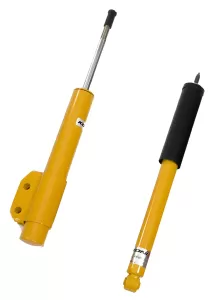 KONI Yellow Sport Shocks use a very progressive compression setting, so during solid loading like a corner the shock is much stiffer than a stock or OE style replacement shock. Yet KONI also made the compression valving softer during those quick and sharp jolts you get from rough roads. This makes them ride softer while simultaneously handling better.