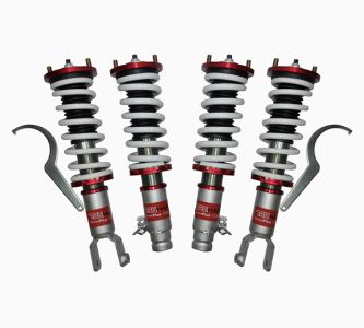 The StreetPlus are a new entry in TruHart's coilover range. TruHart StreetPlus coilovers feature a durable zinc coating with an integrated aluminum top mount (on most applications). The integrated aluminum top mounts will not only give you a firmer ride but make installation easier as well. The bottom mounts are independently adjustable for easy ride height tuning without having to sacrifice shock travel and comfort. These coilovers are a great solution for the budget minded tuner looking for a comfortable coilover that's still perfect for cornering performance.
