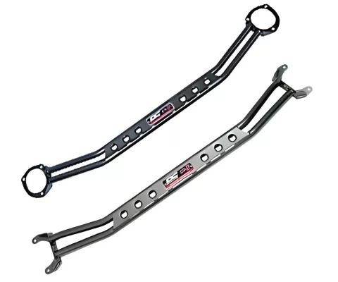 DC Sports carbon steel strut bars reduce a vehicle's chassis flex by connecting the vehicle body at the shock towers for added stiffness. This vastly improves a car's road manners and handling characteristics, works with the factory suspension components, and are a must for road race applications or spirited drivers with heavily modified street vehicles. The carbon steel front strut bar delivers striking looks and performance at a great value.