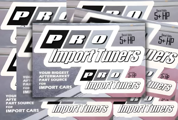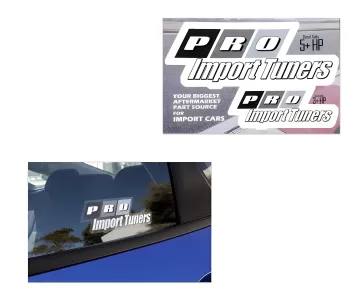 Show your support for PRO Import Tuners (www.proimporttuners.com), our sister site! These new PRO Import Tuners vinyl decals are precision-cut and look great on any year Honda Civic. Includes two individual decals. The larger decal is approximately 5.5" x 2" and the smaller one is about 3.5" x 1.25".