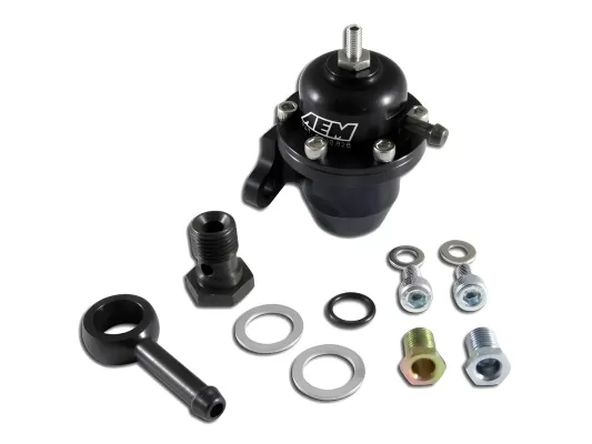 • Only AEM adjustable fuel pressure regulators have replaceable discharge ports to match regulator and fuel pump output.