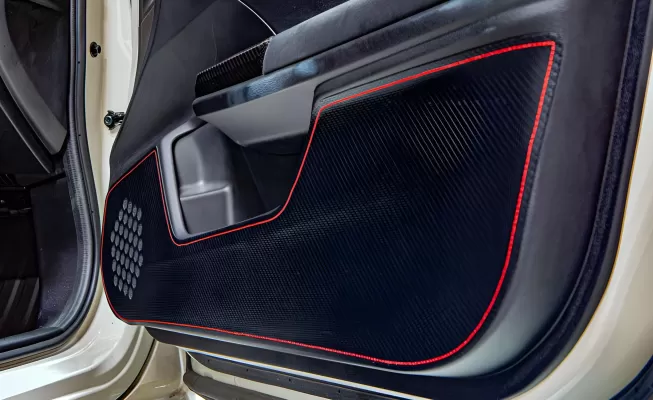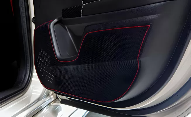 Revel GT Design Kick Panel Covers are a great way to protect and enhance the door panels of your Honda Civic. Kick panels usually get scuffed or scratched over time, but these kick panel overlays will prevent that from happening. What's more, these kick panel overlays use a premium carbon fiber style pattern with colored stitching that really improves on the plain factory look. Each cover is precisely cut to your specific Honda Civic for a quality fit. Since they use a specialty adhesive, these Revel kick panel covers are both easy to install and remove too!