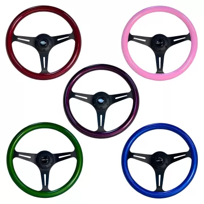 If you have a classic Honda Civic or just want to give your newer model some throwback flavor this NRG Painted Wood Steering Wheel is the perfect choice! NRG has taken the classic retro style of the wood rimmed steering wheel and updated it with bold new colors! It still offers the same great performance that all NRG steering wheels offer and adds a splash of classic style and refinement. Available in multiple different eye catching colors with either black, polished or neo-chrome spokes you can find the perfect combo to fit your individual style. Each wheel includes hardware and an NRG logo horn button. These wheels are offered in "Flat Type" and "Deep Dish" styles to suit many different preferred driving positions. Overall sizes available are 310mm, 330mm and 350mm diameter for quick steering response and excellent control.