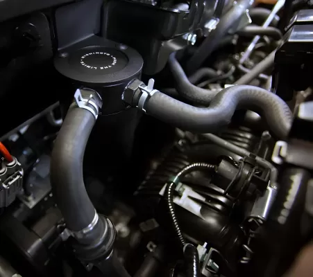 More Info: Includes hoses and hardware for bolt-on catch can breather solution.